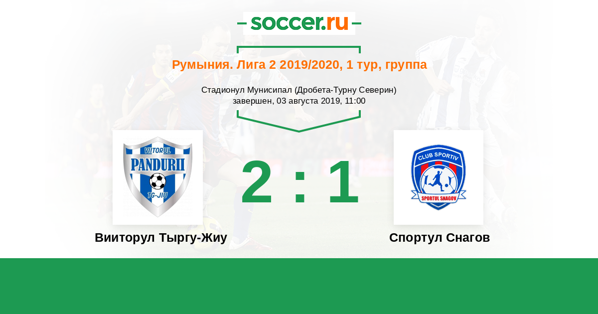 Вииторул Тыргу-Жиу - Спортул Снагов: обзор матча 3 августа 2019