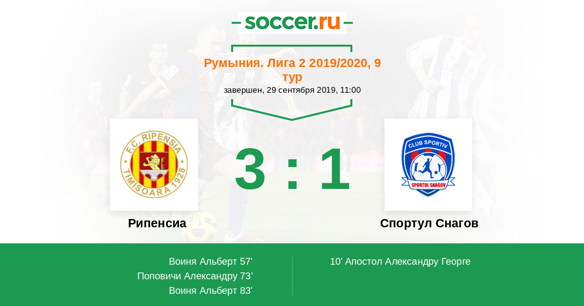 Рипенсиа - Спортул Снагов: обзор матча 29 сентября 2019