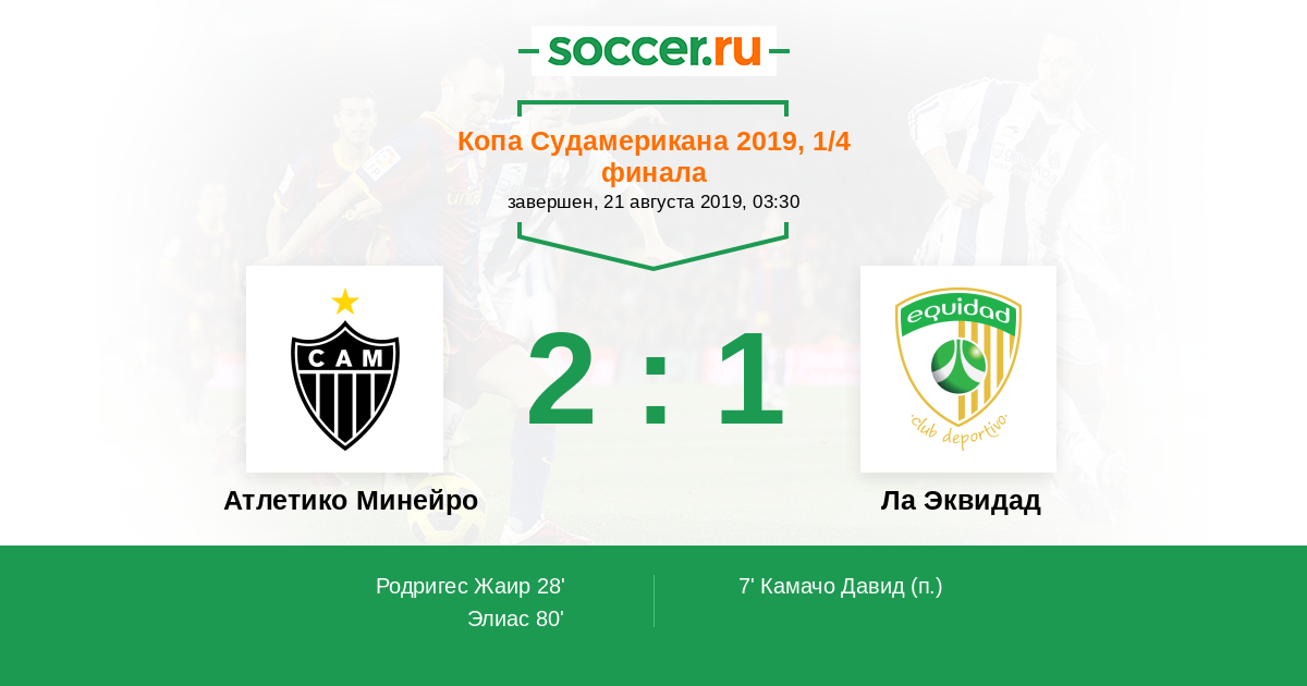 Атлетико Минейро - Ла Эквидад: обзор матча 21 августа 2019