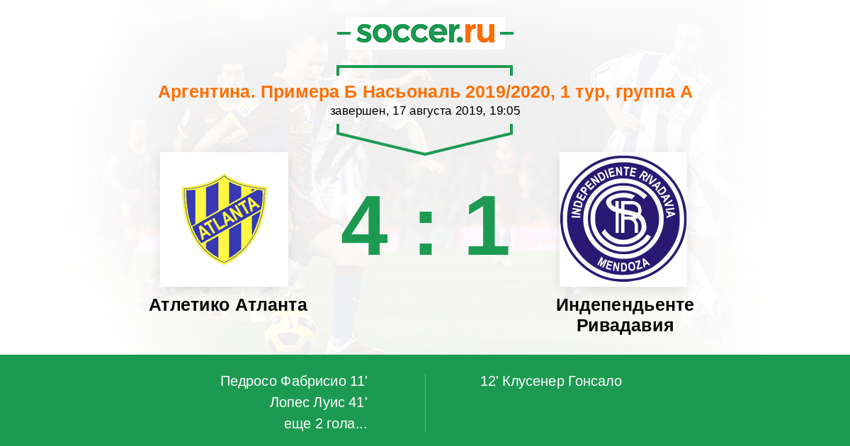 Атлетико Атланта - Индепендьенте Ривадавия: обзор матча 17 августа 2019