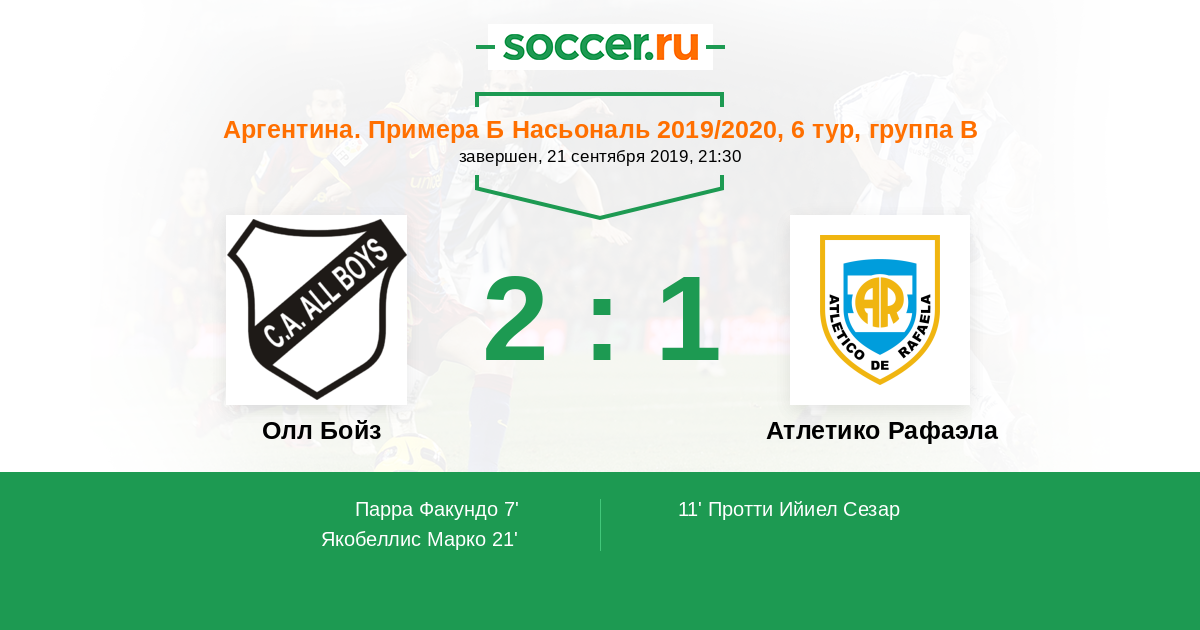 Олл Бойз - Атлетико Рафаэла: обзор матча 21 сентября 2019