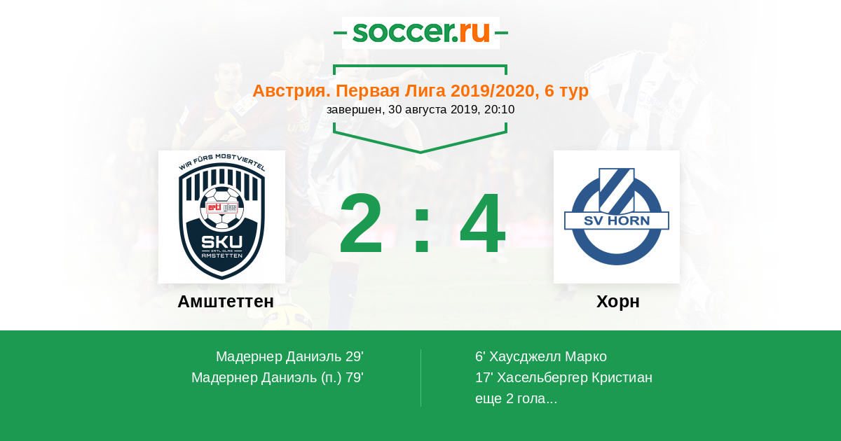 Амштеттен - Хорн: обзор матча 30 августа 2019