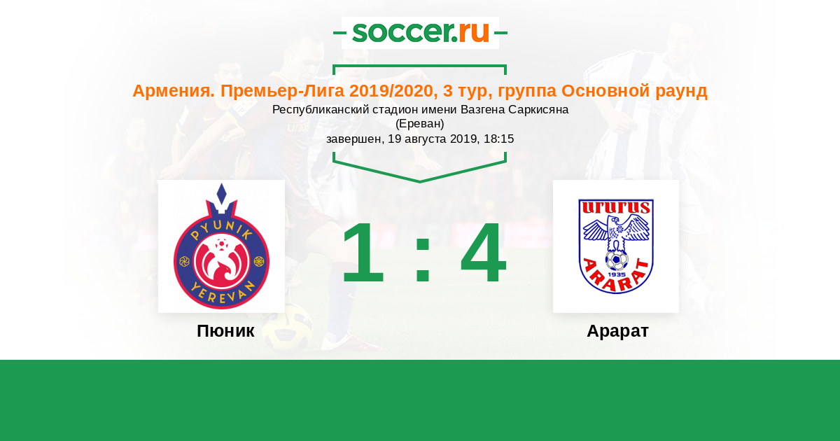 Пюник - Арарат: обзор матча 19 августа 2019
