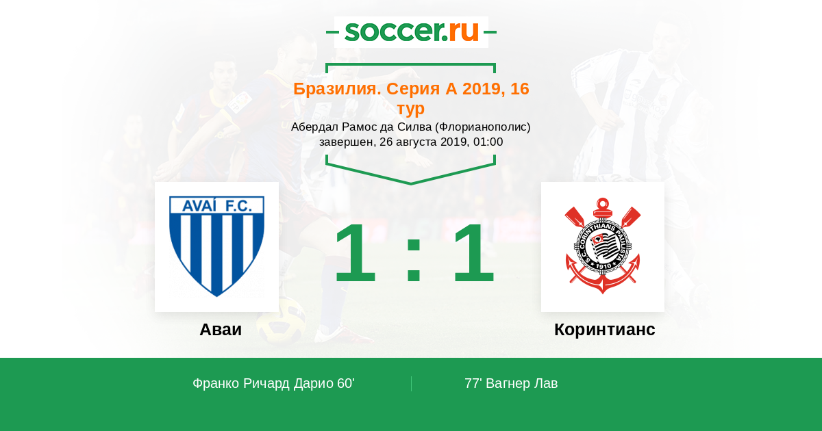 Аваи - Коринтианс: обзор матча 26 августа 2019