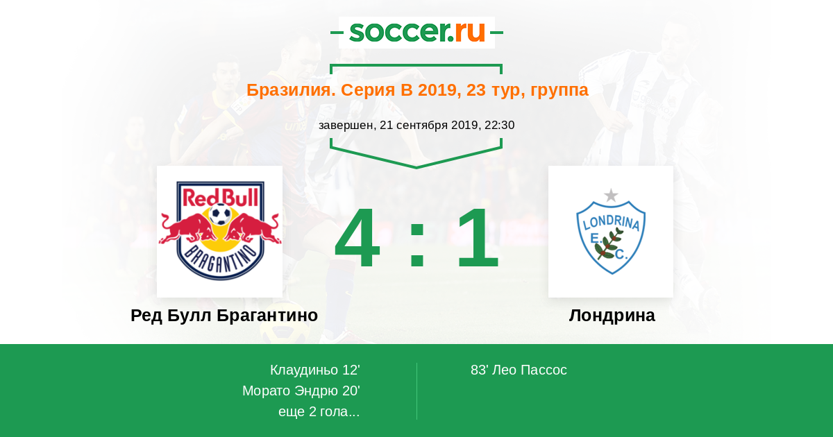 Ред Булл Брагантино - Лондрина: обзор матча 21 сентября 2019