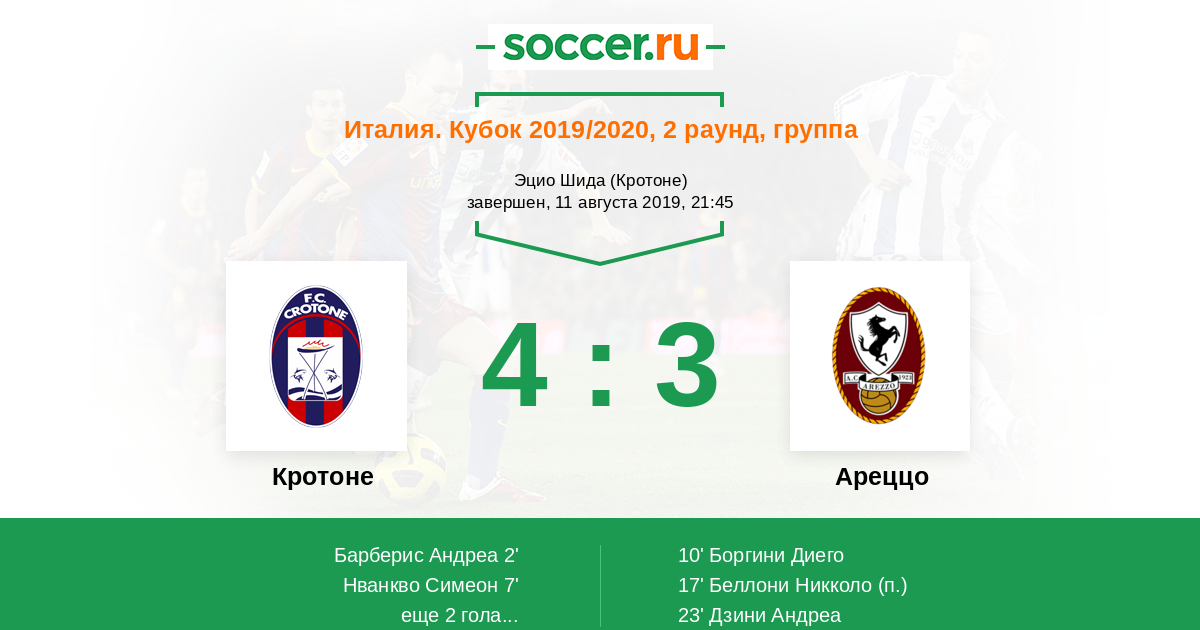Кротоне - Ареццо: обзор матча 11 августа 2019