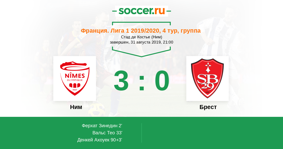 Зинедин Ферхат (Ним) великолепно пробил, но голкипер отбил мяч в перекладину. Угловой. Ним получит шанс забить.