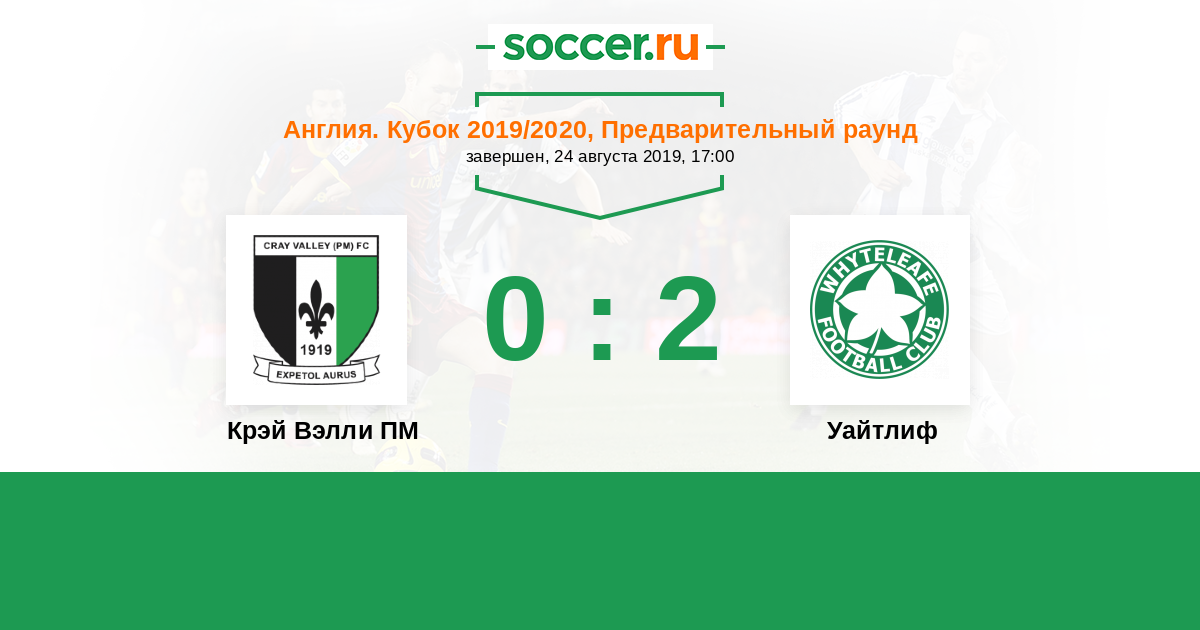 Крэй Вэлли ПМ - Уайтлиф: обзор матча 24 августа 2019