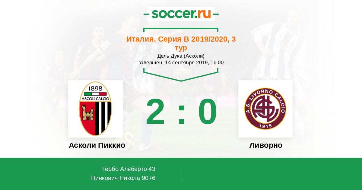 Асколи Пиккио - Ливорно: обзор матча 14 сентября 2019