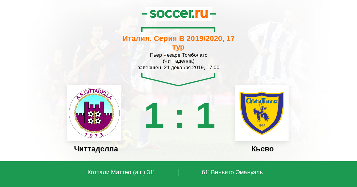 Читтаделла - Кьево: обзор матча 21 декабря 2019
