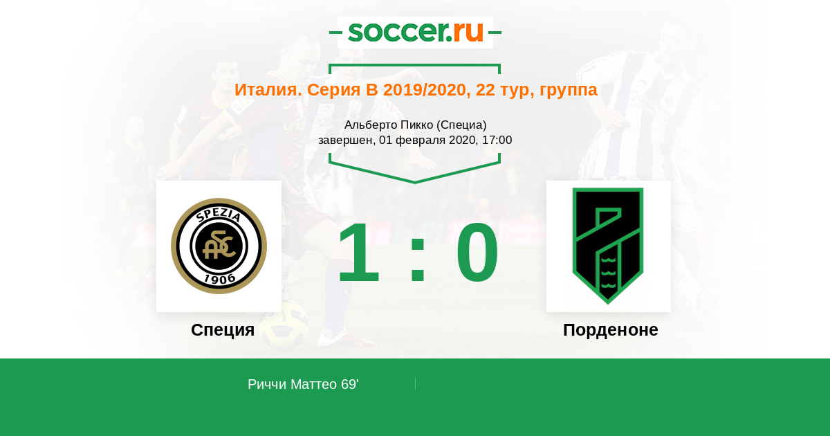 Специя - Порденоне: обзор матча 1 февраля 2020