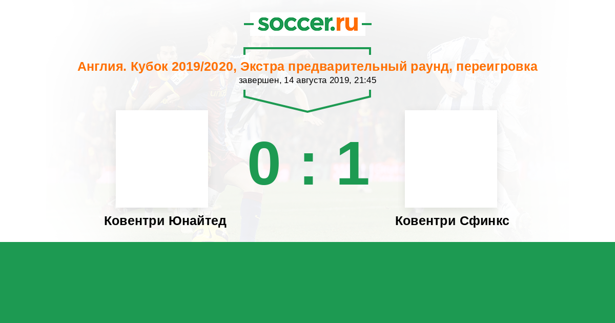 Ковентри Юнайтед - Ковентри Сфинкс: обзор матча 14 августа 2019
