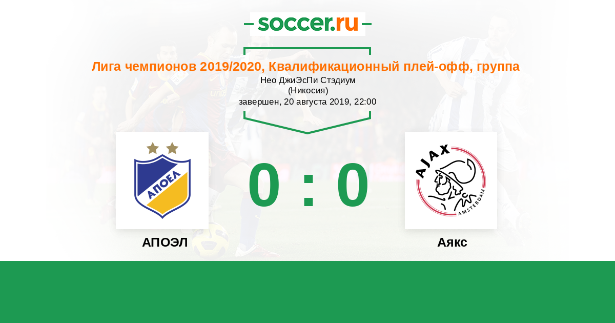 АПОЭЛ - Аякс: обзор матча 20 августа 2019