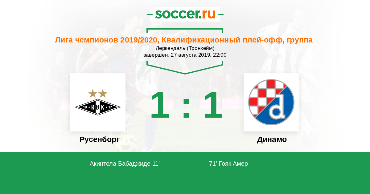 Русенборг - Динамо: обзор матча 27 августа 2019