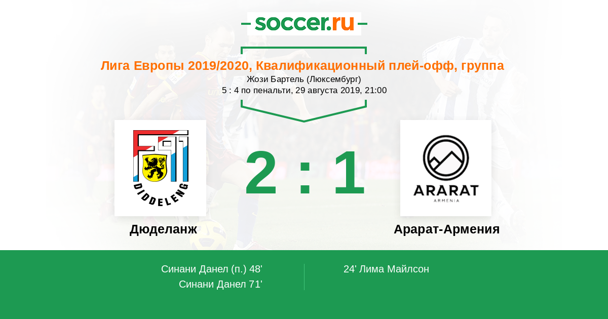Дюделанж - Арарат-Армения: обзор матча 29 августа 2019