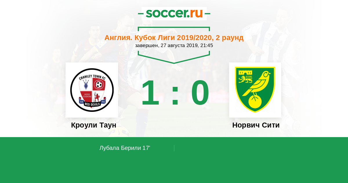 Кроули Таун - Норвич Сити: обзор матча 27 августа 2019