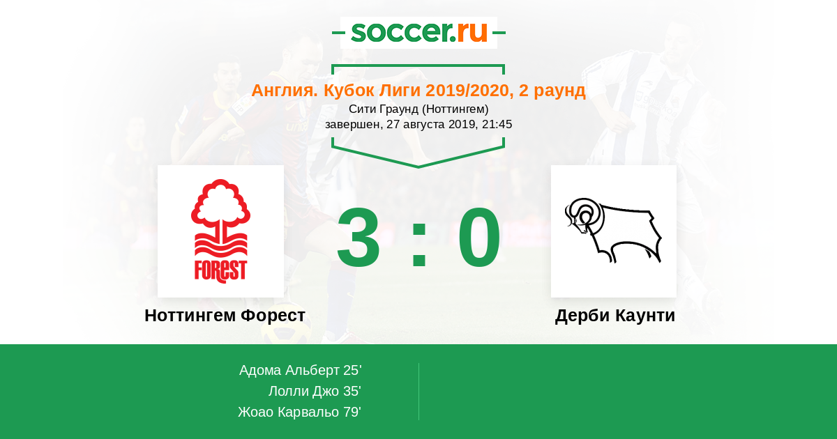 Ноттингем Форест - Дерби Каунти: обзор матча 27 августа 2019