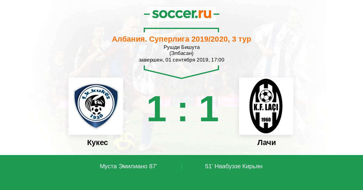 Кукес - Лачи: обзор матча 1 сентября 2019