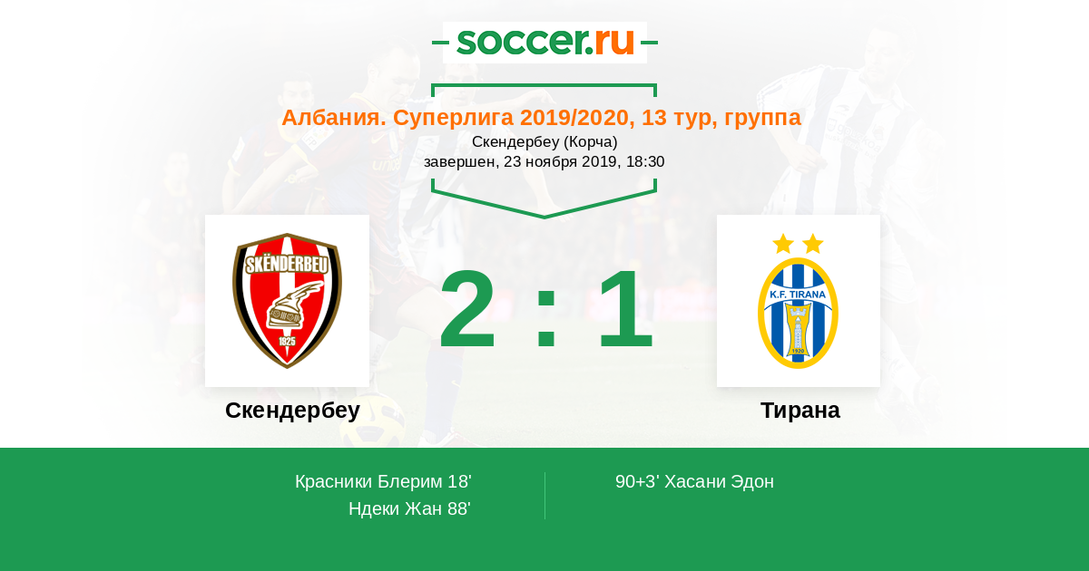 Скендербеу - Тирана: обзор матча 23 ноября 2019
