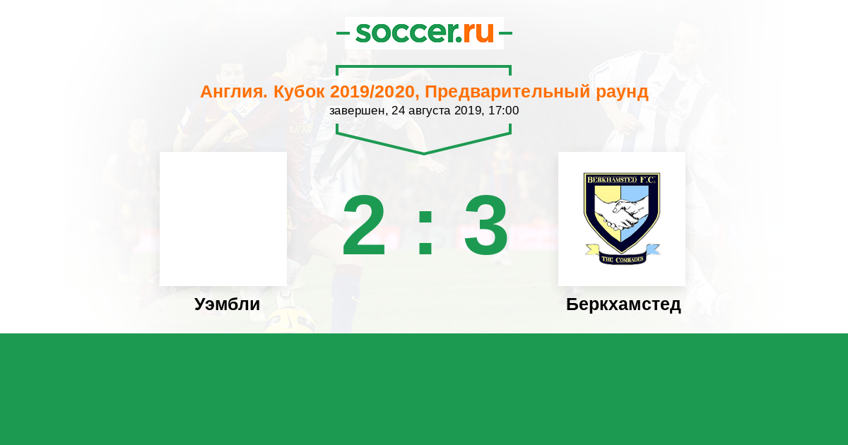 Уэмбли - Беркхамстед: обзор матча 24 августа 2019