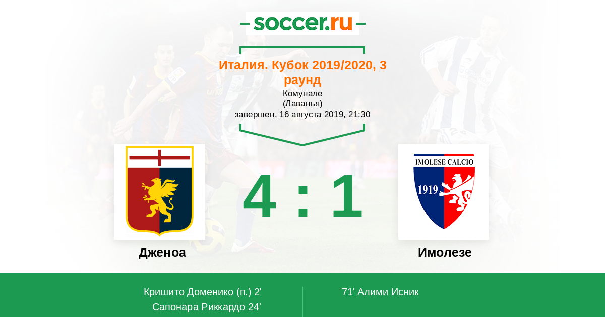 Дженоа - Имолезе: обзор матча 16 августа 2019