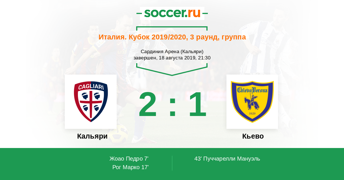 Кальяри - Кьево: обзор матча 18 августа 2019