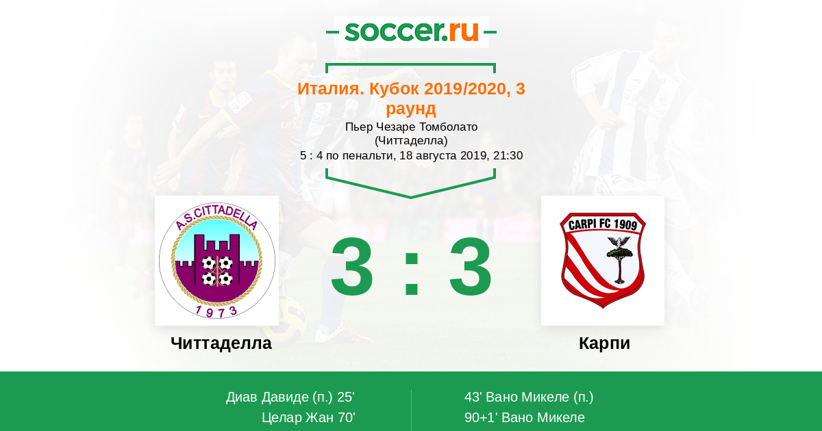 Читтаделла - Карпи: обзор матча 18 августа 2019
