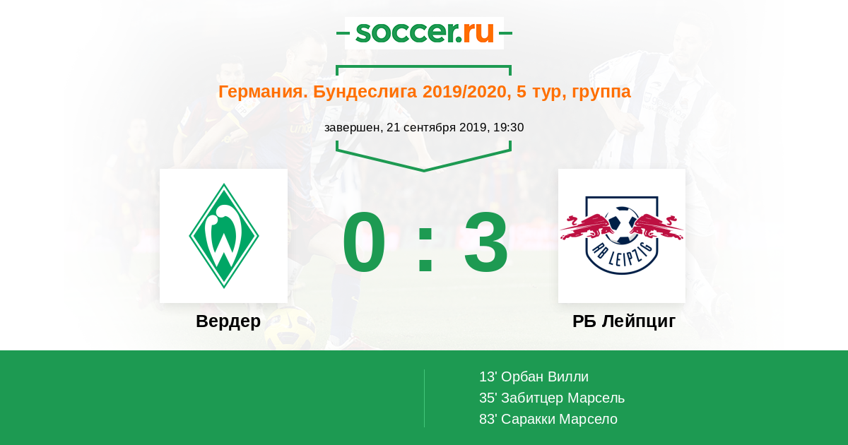 Вердер - РБ Лейпциг: обзор матча 21 сентября 2019