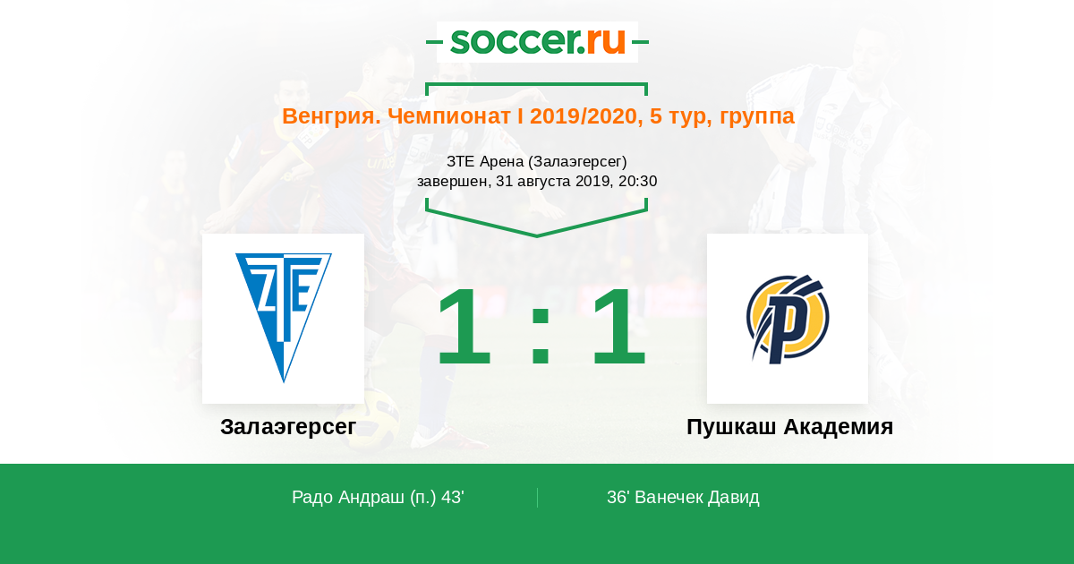 Залаэгерсег - Пушкаш Академия: обзор матча 31 августа 2019