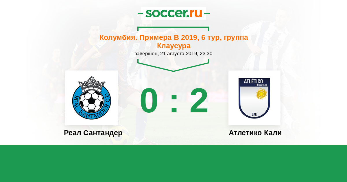 Реал Сантандер - Атлетико Кали: обзор матча 21 августа 2019