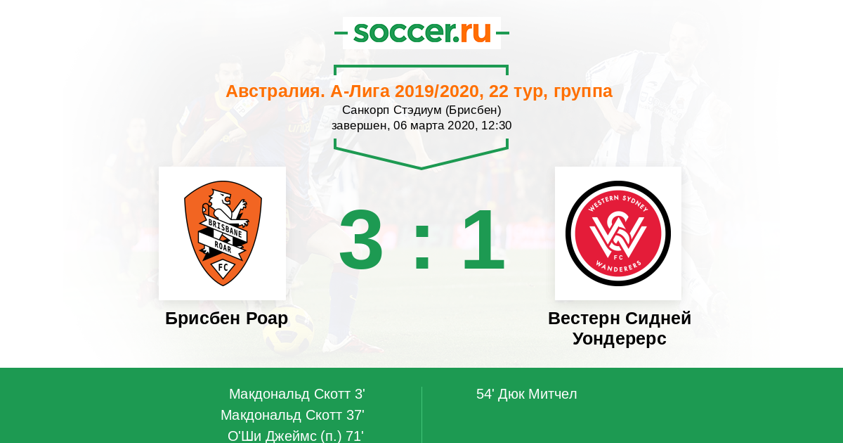 Брисбен Роар - Вестерн Сидней Уондерерс: обзор матча 6 марта 2020