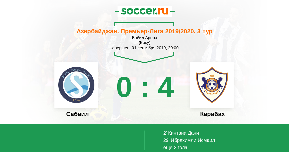 Сабаил - Карабах: обзор матча 1 сентября 2019