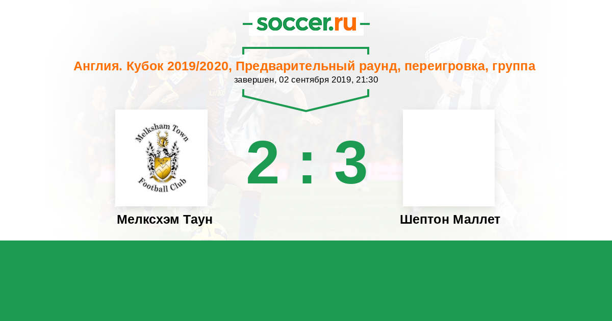 Мелксхэм Таун - Шептон Маллет: обзор матча 2 сентября 2019