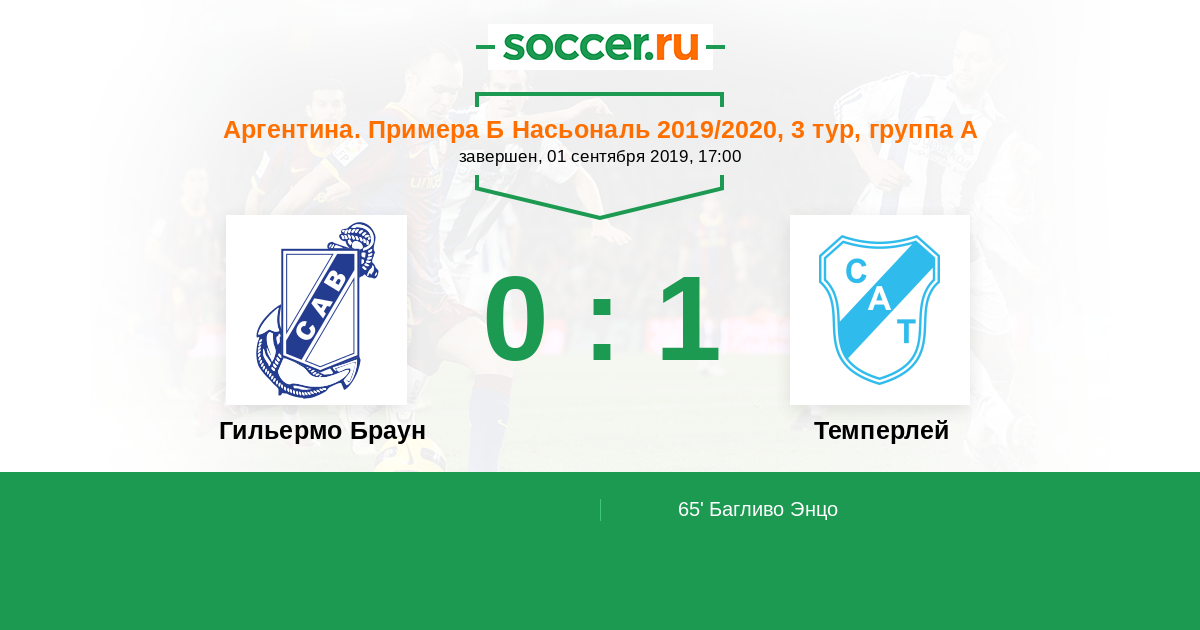 Гильермо Браун - Темперлей: обзор матча 1 сентября 2019