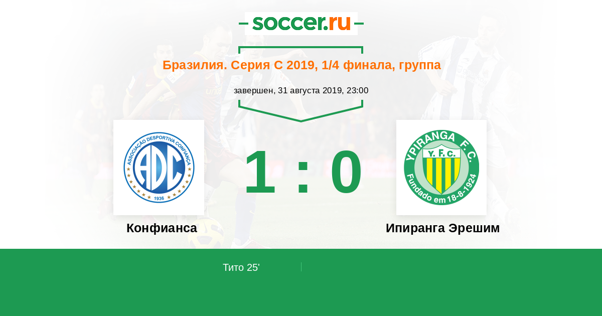 Конфианса - Ипиранга Эрешим: обзор матча 31 августа 2019