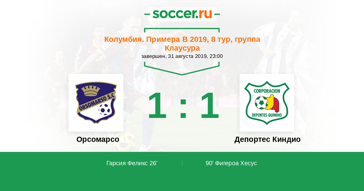 Орсомарсо - Депортес Киндио: обзор матча 31 августа 2019