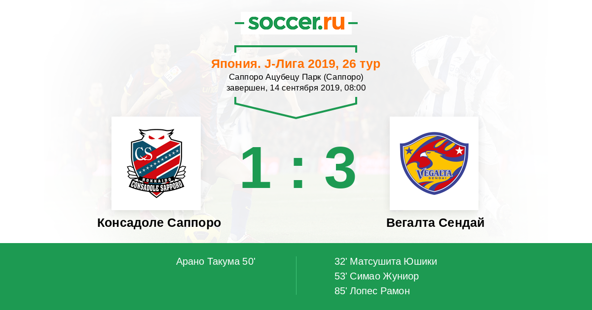 Консадоле Саппоро - Вегалта Сендай: обзор матча 14 сентября 2019