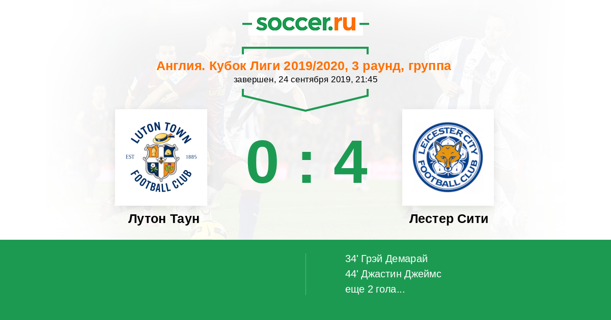 Лутон Таун - Лестер Сити: обзор матча 24 сентября 2019