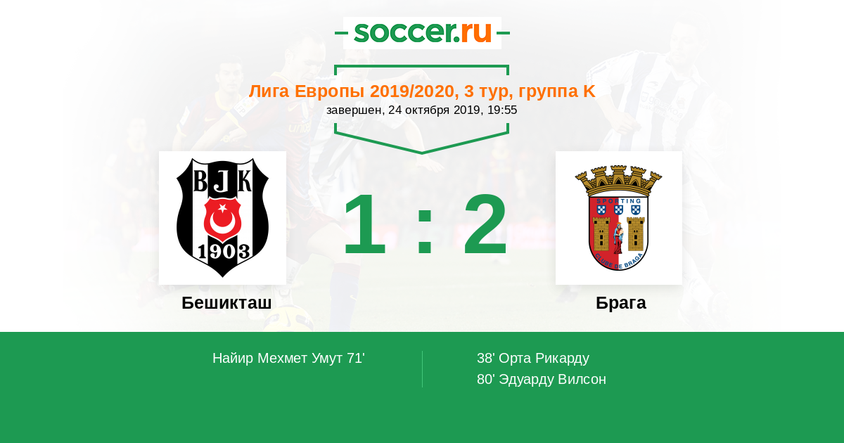 Бешикташ - Брага: обзор матча 24 октября 2019