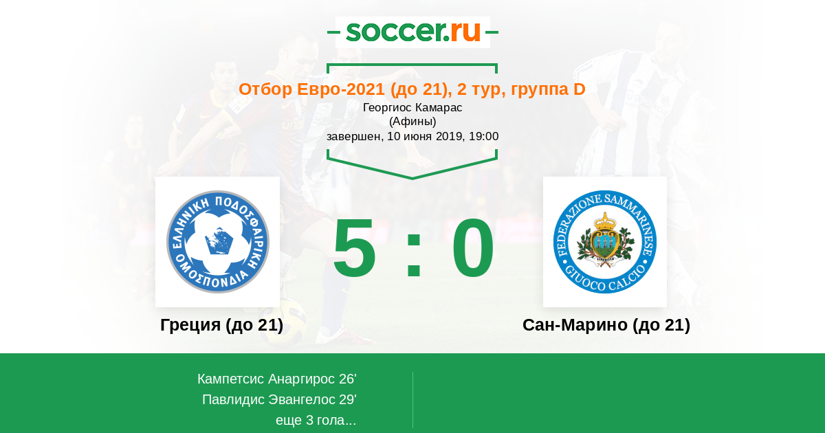 Греция (до 21) - Сан-Марино (до 21): обзор матча 10 июня 2019