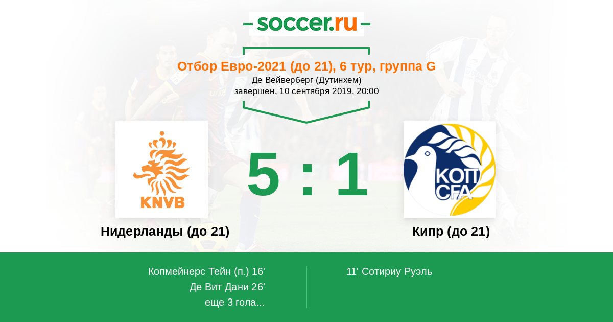 Нидерланды (до 21) - Кипр (до 21): обзор матча 10 сентября 2019