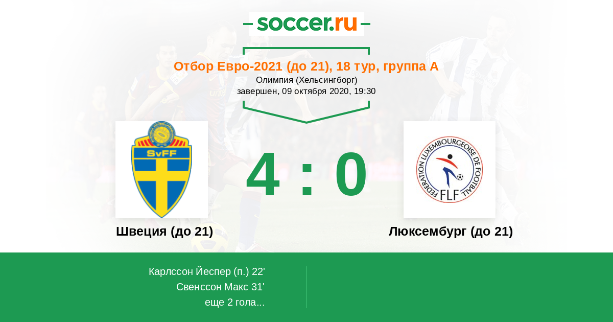 Швеция (до 21) - Люксембург (до 21): обзор матча 9 октября 2020