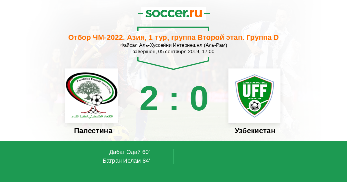 Палестина - Узбекистан: обзор матча 5 сентября 2019
