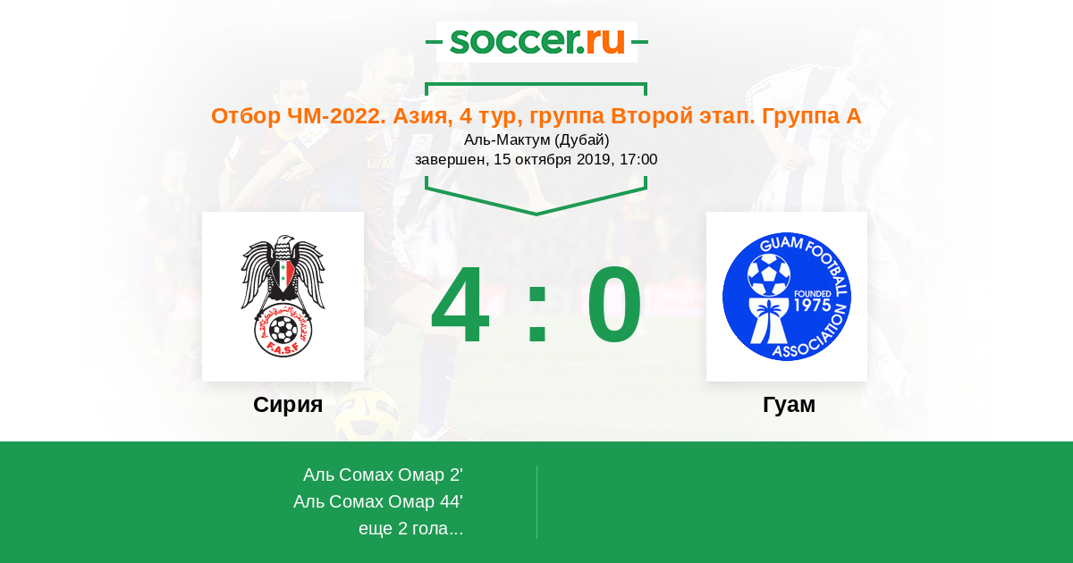 Сирия - Гуам: обзор матча 15 октября 2019