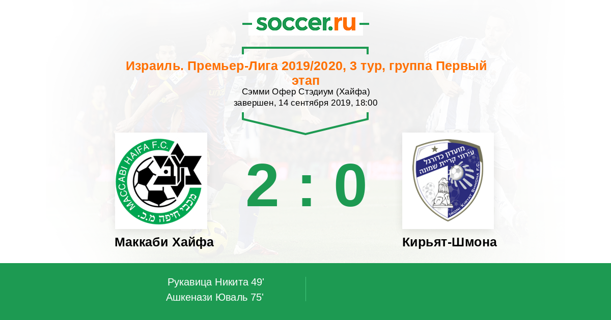Маккаби Хайфа - Кирьят-Шмона: обзор матча 14 сентября 2019