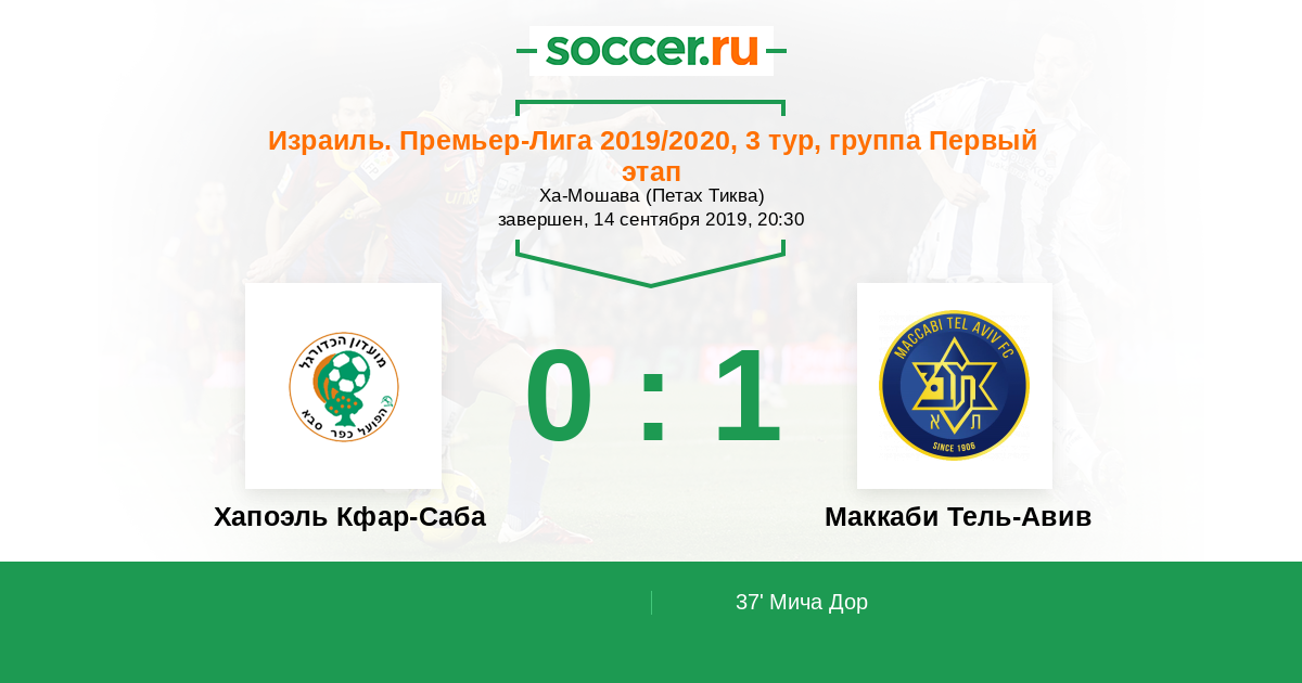 Хапоэль Кфар-Саба - Маккаби Тель-Авив: обзор матча 14 сентября 2019