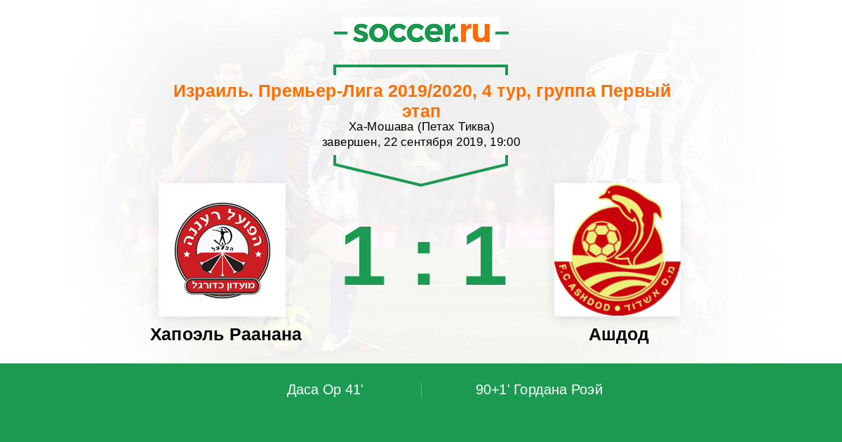 Хапоэль Раанана - Ашдод: обзор матча 22 сентября 2019