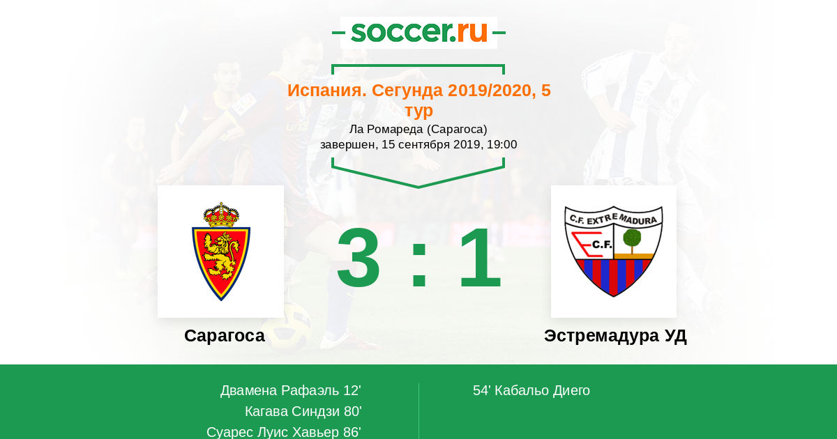 Сарагоса - Эстремадура УД: обзор матча 15 сентября 2019