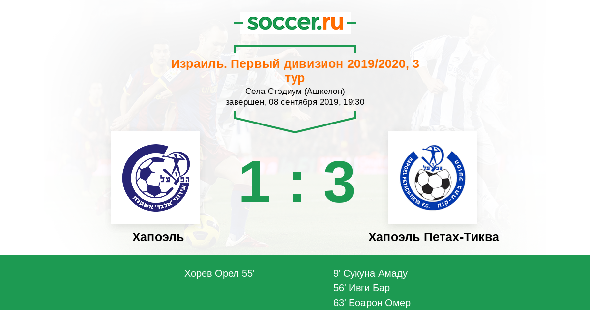 Хапоэль - Хапоэль Петах-Тиква: обзор матча 8 сентября 2019