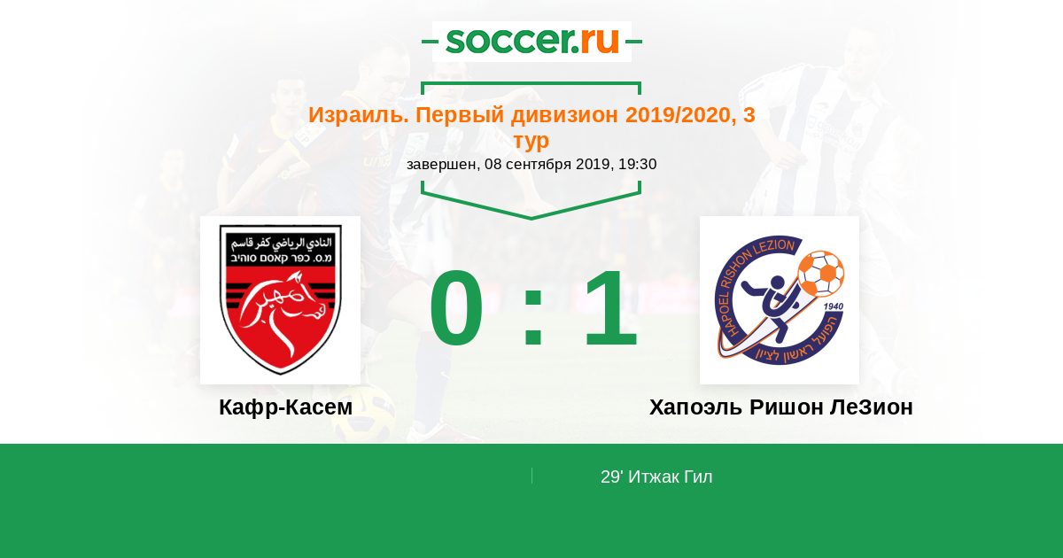 Кафр-Касем - Хапоэль Ришон ЛеЗион: обзор матча 8 сентября 2019